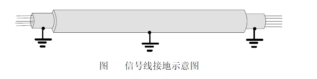 6、信號線為屏蔽電纜線,屏蔽層應(yīng)有良好絕緣,不可與機(jī)架、柜體發(fā)生摩擦、打火,屏蔽層兩端及中間均需做接地連接(見下圖)。