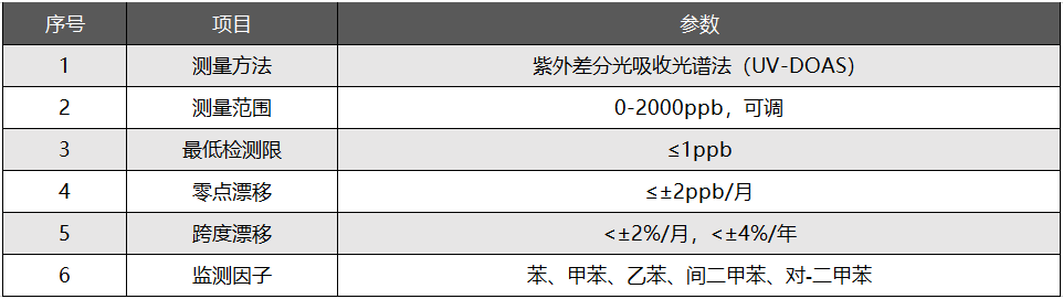 【關鍵點】:UV-DOAS,苯、甲苯、二甲苯,1ppb檢測限,光路可達1km,維護量小!