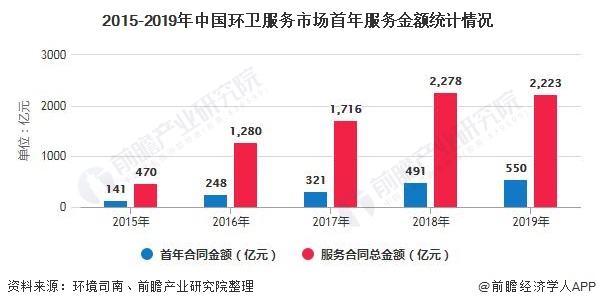 環(huán)衛(wèi)服務(wù)市場化改革之初至目前成為必然的發(fā)展趨勢,據(jù)環(huán)境司南不完全統(tǒng)計(jì),2019年全國各地新簽環(huán)衛(wèi)服務(wù)合同總金額為2223億元,同比略降2.41%,首年合同金額為550億元,同比增長12.02%。
