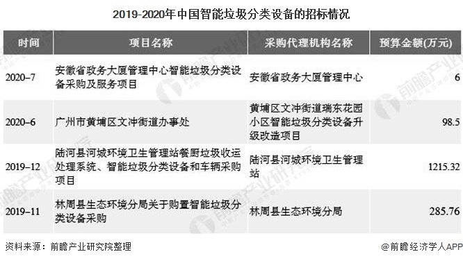 隨著垃圾分類、鄉(xiāng)村振興、農(nóng)村人居環(huán)境整治等利好政策的落地執(zhí)行,為環(huán)衛(wèi)裝備,特別是垃圾分類裝備帶來了增量。但是智能垃圾分類設(shè)備一般金額較大,從招標(biāo)情況來看,智能垃圾分類設(shè)備的招標(biāo)總量金額較大。